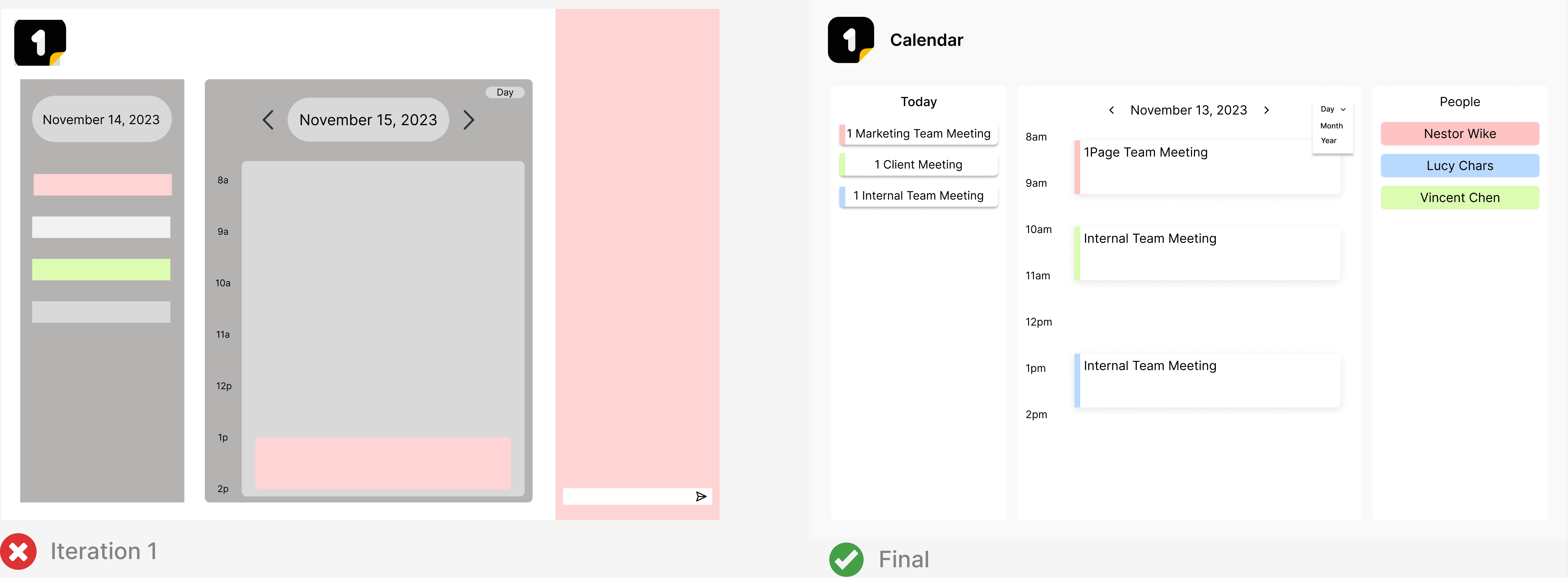 We were unsure how to create a space that prioritized the most relevant events and contact details, or how to separate meetings with different types of people for different occasions.