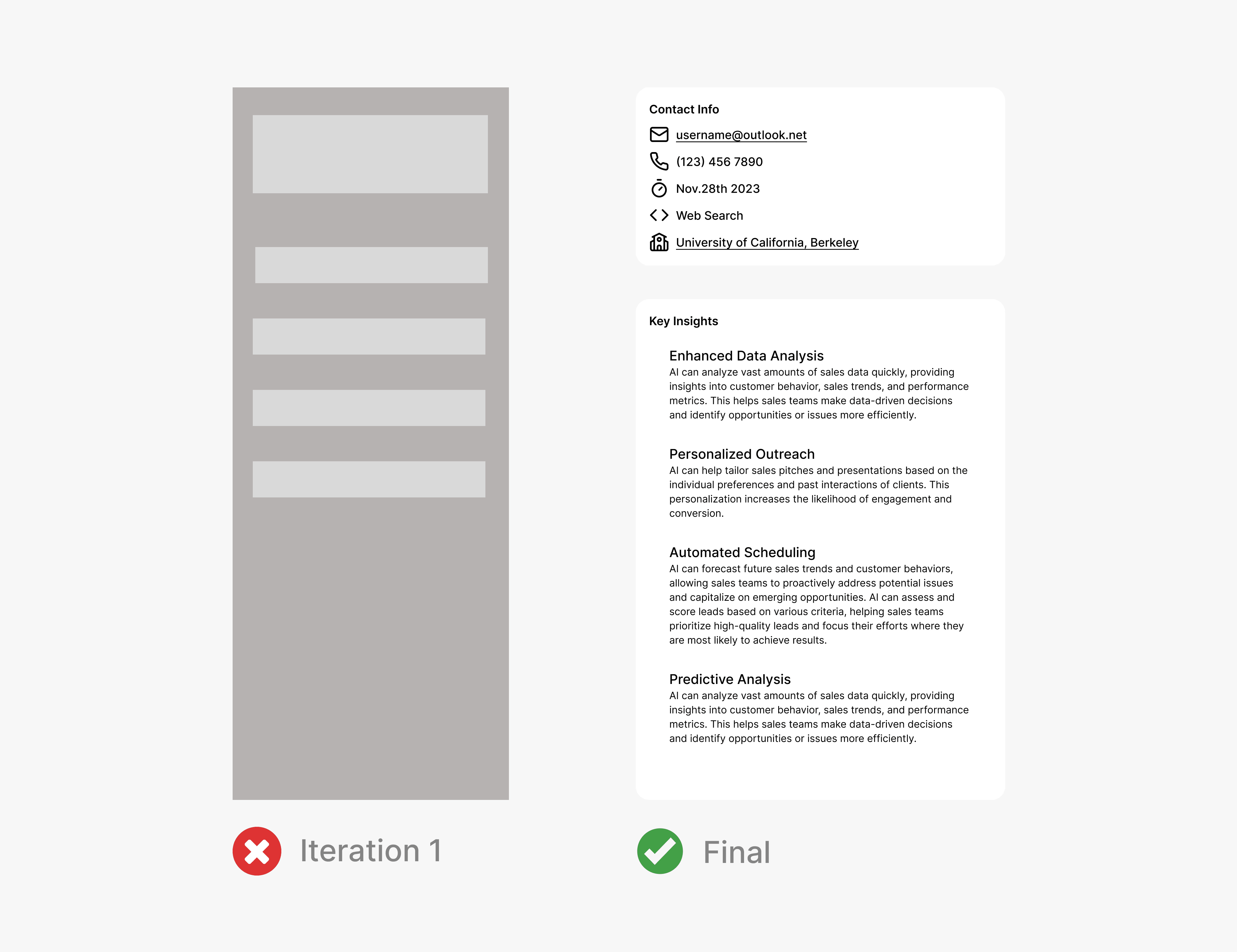 We were unsure how to address the need for personalized key insights for each important contact, which many salespeople could benefit from, and how AI could play a role in this integration.