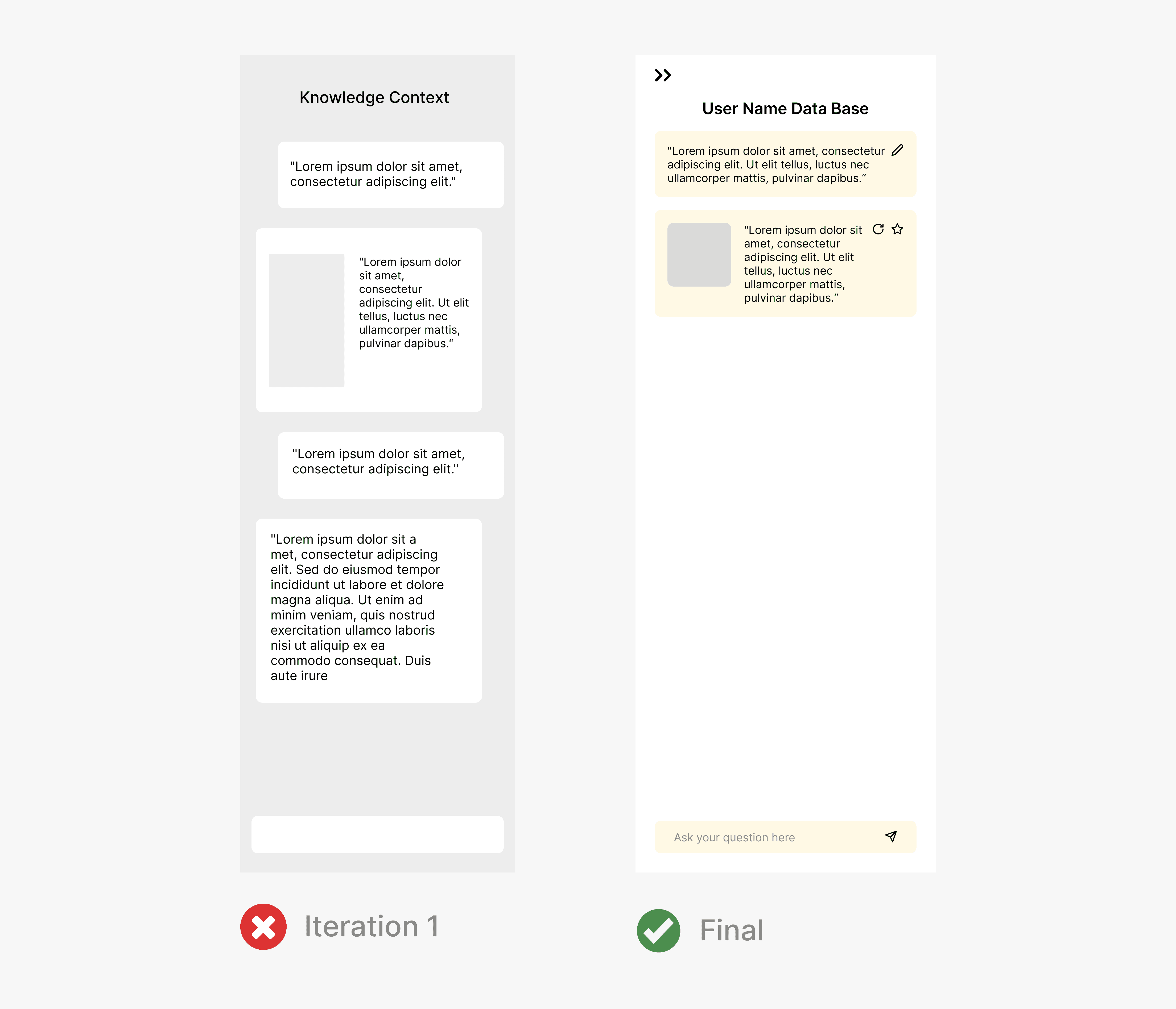 We began exploring different interfaces for the AI chatbot, something our client strongly wanted, along with its design and how generative AI has influenced design systems.
