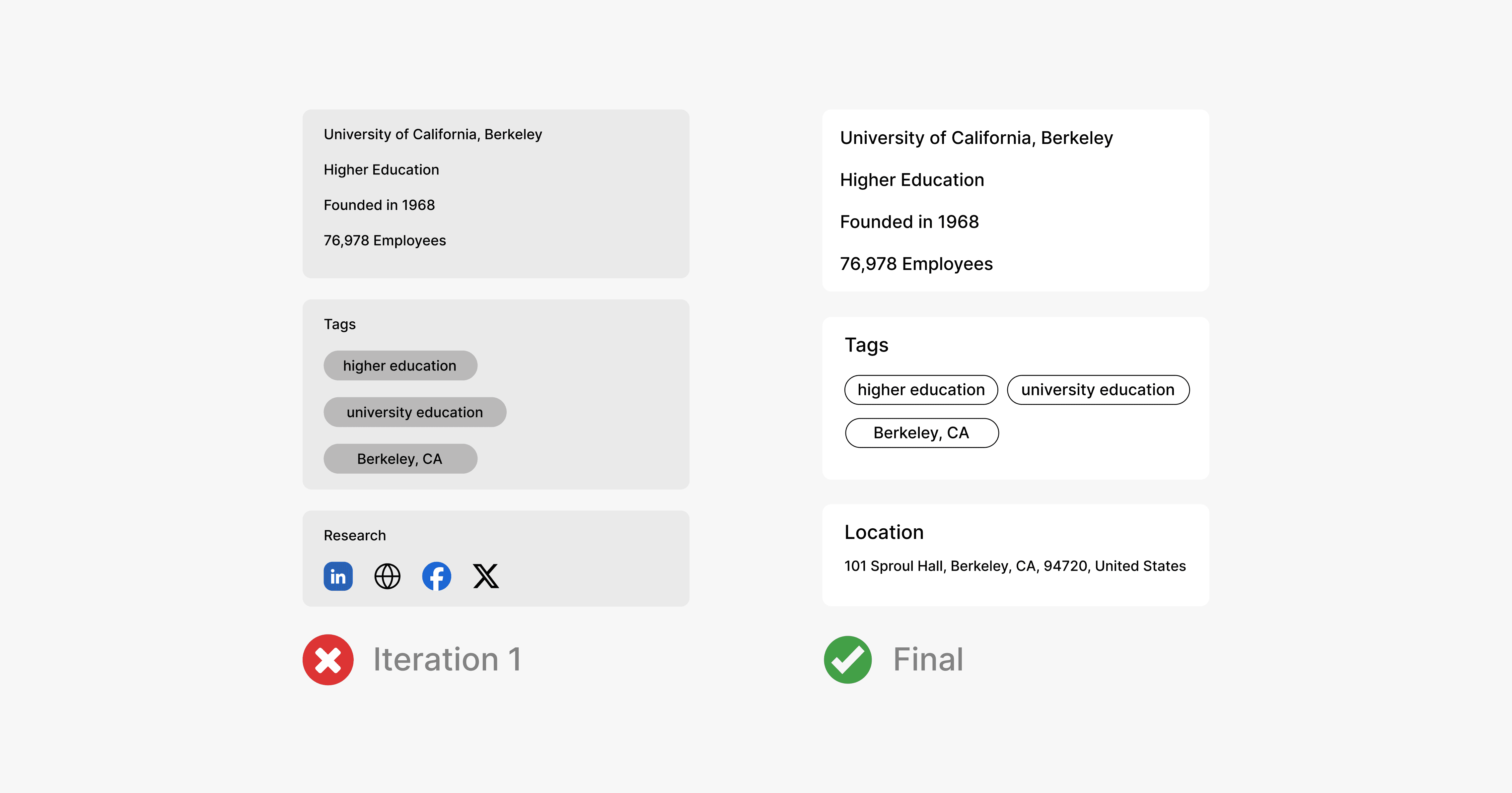 We designed the tags with the understanding that salespeople often search for information about potential clients before sales meetings. Having insights into their background, location, and other relevant details helps break the ice.