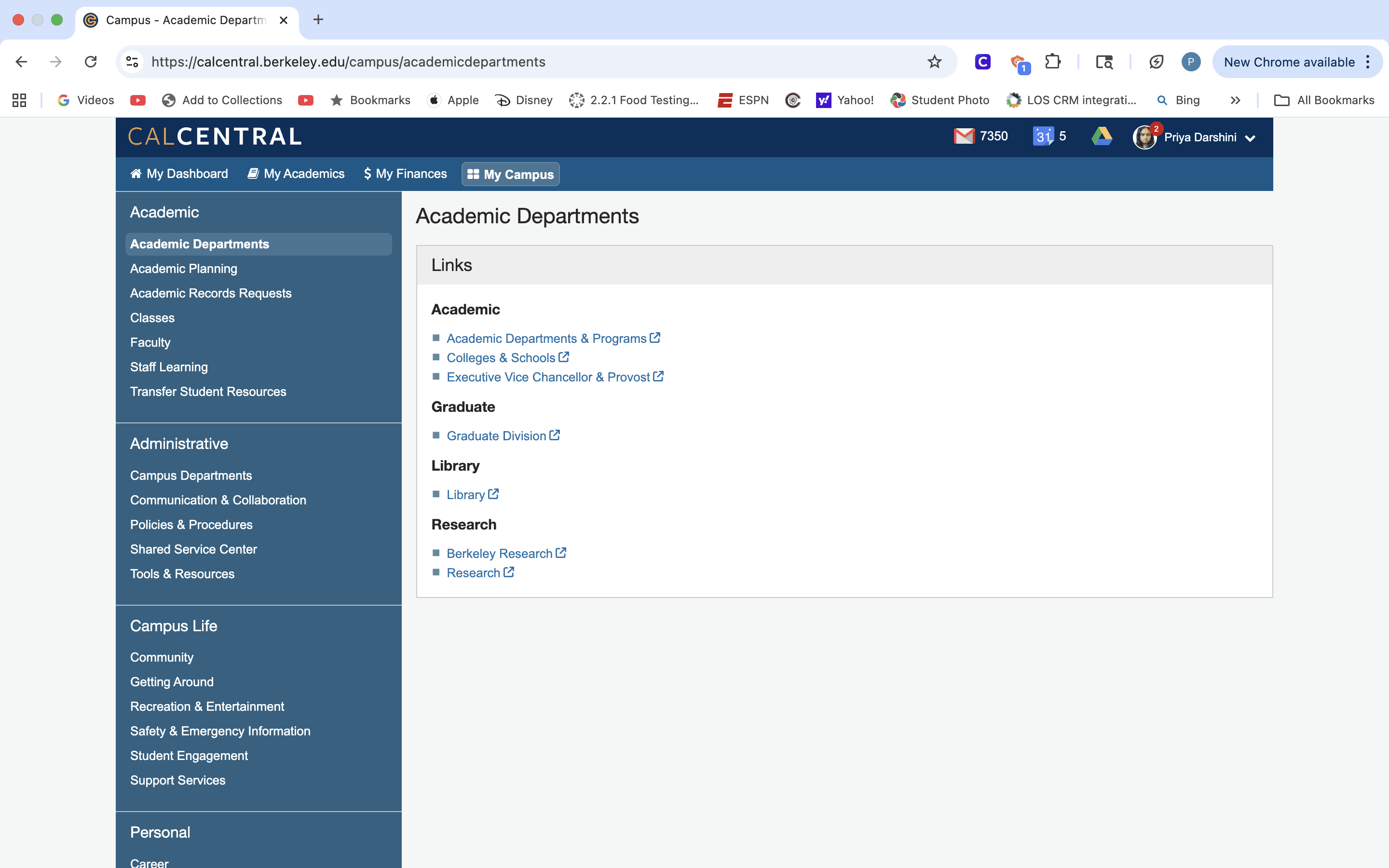 Follows a traditional departmental structure that feels familiar to the old CalCentral