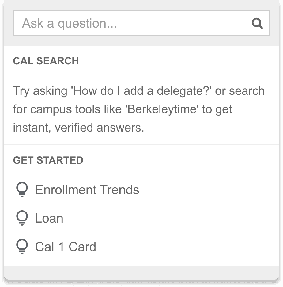 Key Opportunity Area: Transform CalCentral into a trusted AI discovery experience that delivers direct answers while using fuzzy matching and related-topic suggestions to reduce reliance on registrar support.