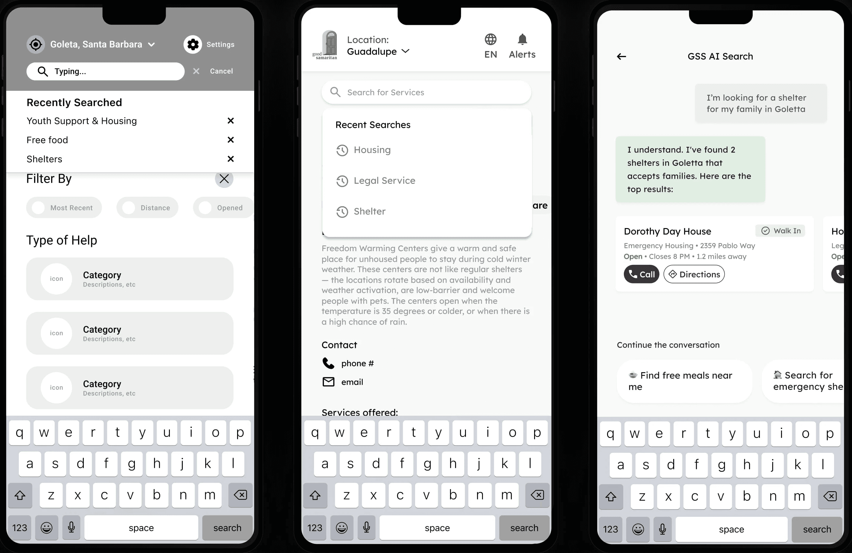 This prototype validates the core user flow, from searching and filtering resources on the list view to viewing expanded service details and saving it for later access.